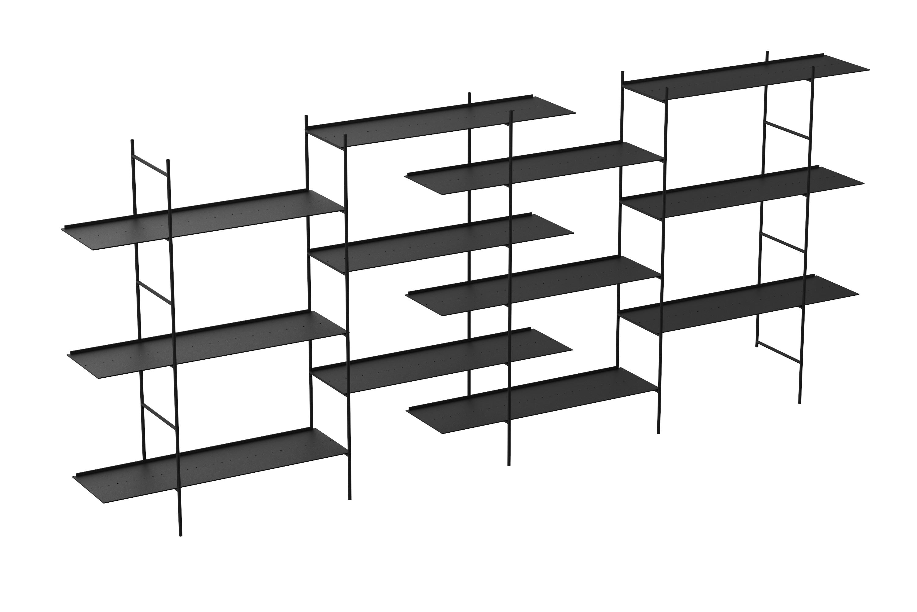 Versatile and simple, The Phantom Shelving System offers endless possibilities with its customizable design. Comprising of only three elements, this modular shelving system provides simple storage flexibility to any space.
