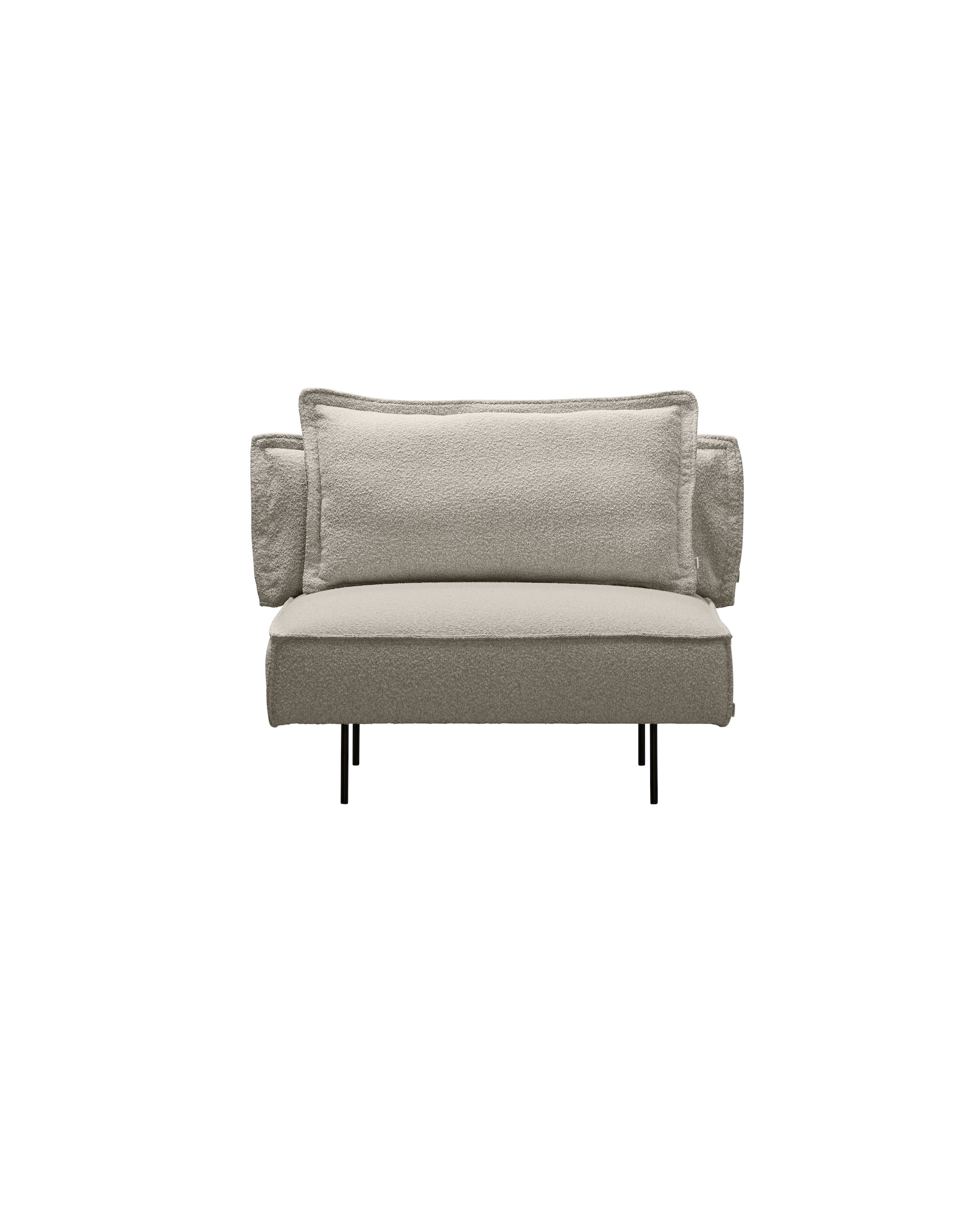 Made like building blocks, the Modular Sofa offers infinite combinations in your desired upholstery. Freely add or remove armrests, backrests, modules, or chaise longs for the perfect fit. Combine products or complement them with the Accent Table as an offset coffee table, flush in height with the modules.