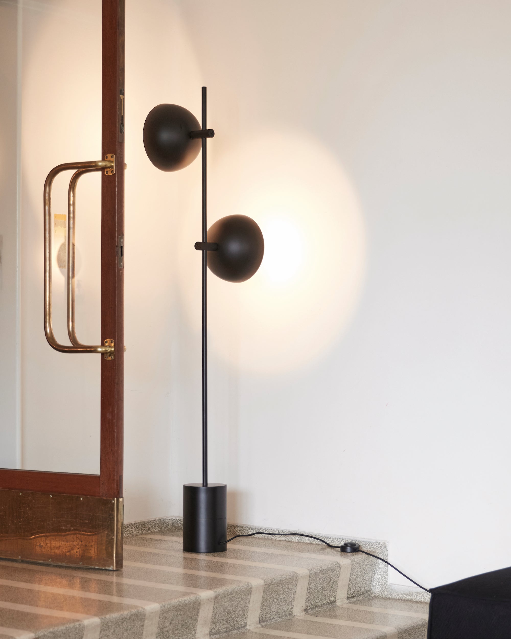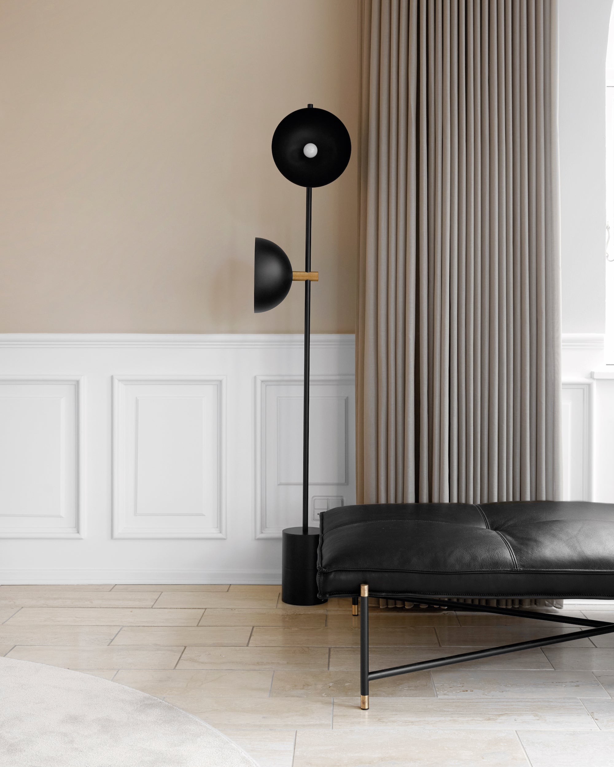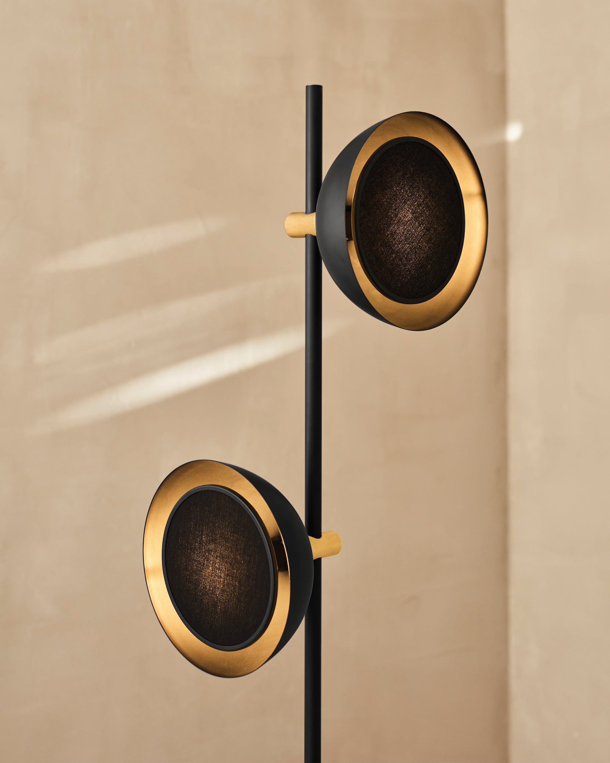 Available in all-black or with brass details for an added touch of warmth and elegance, the design integrates knurled socket details, providing a layered experience that is both tactile and visually appealing.