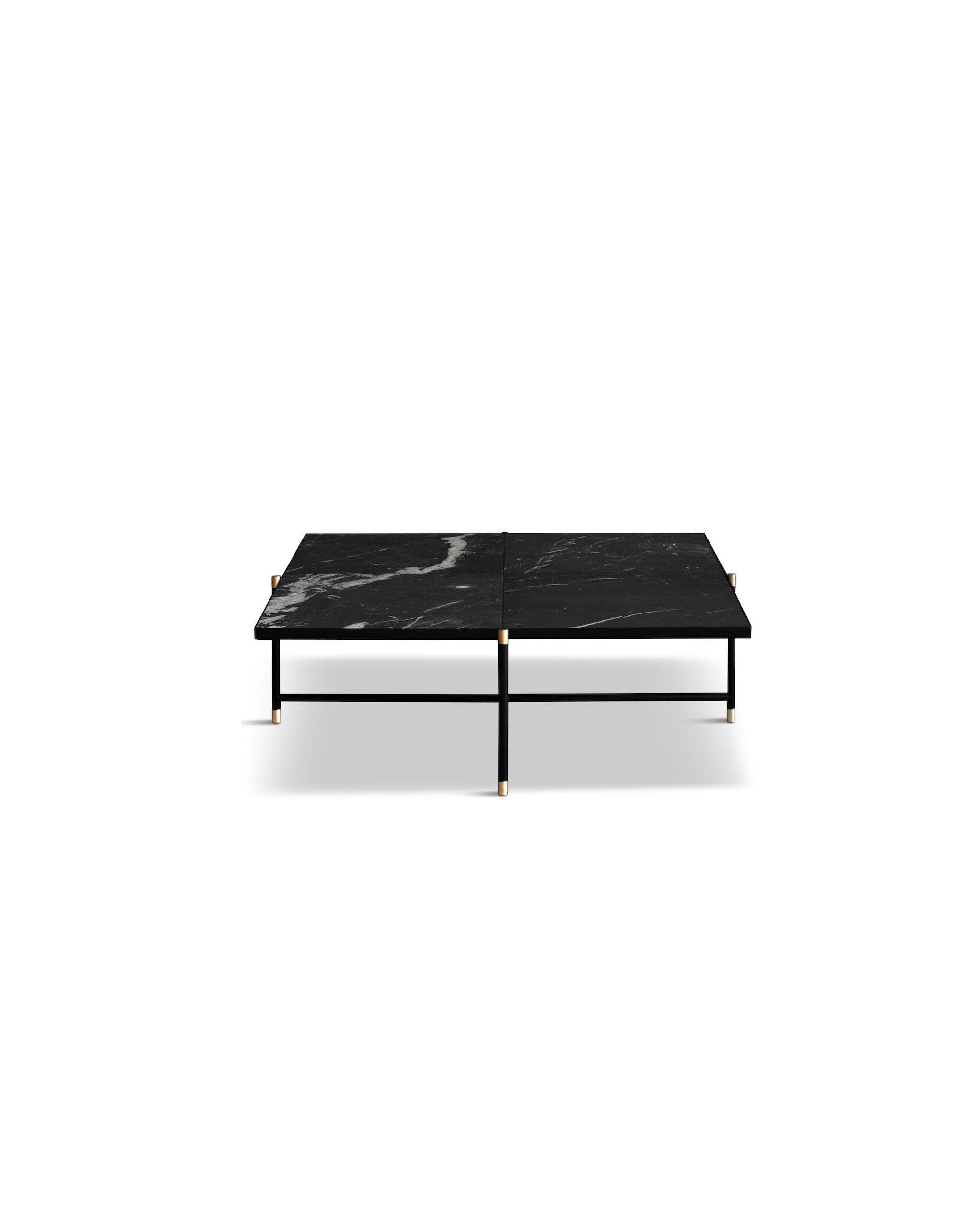 Choose between a black powder-coated or stainless steel frame paired with a distinctive marble top. Embrace the uniqueness of each marble tile, as natural variations create one-of-a-kind stones. For added warmth and an elegant touch, opt for solid brass details with the black frame.
