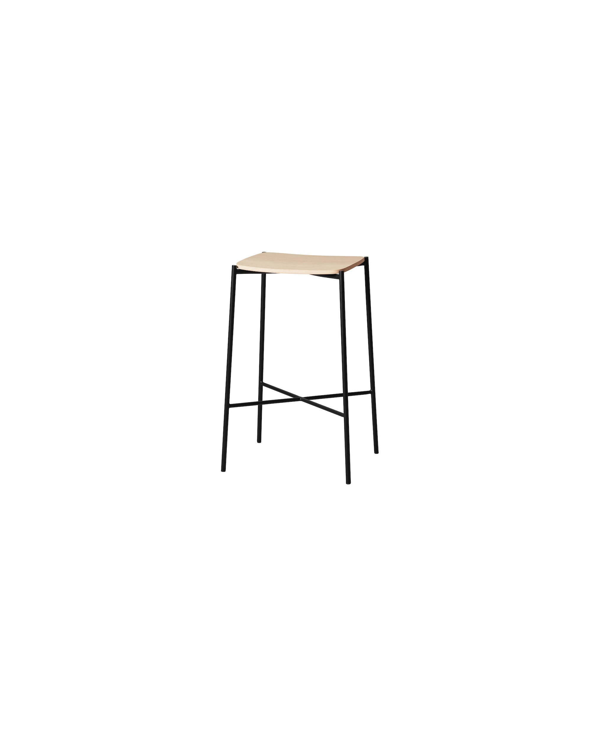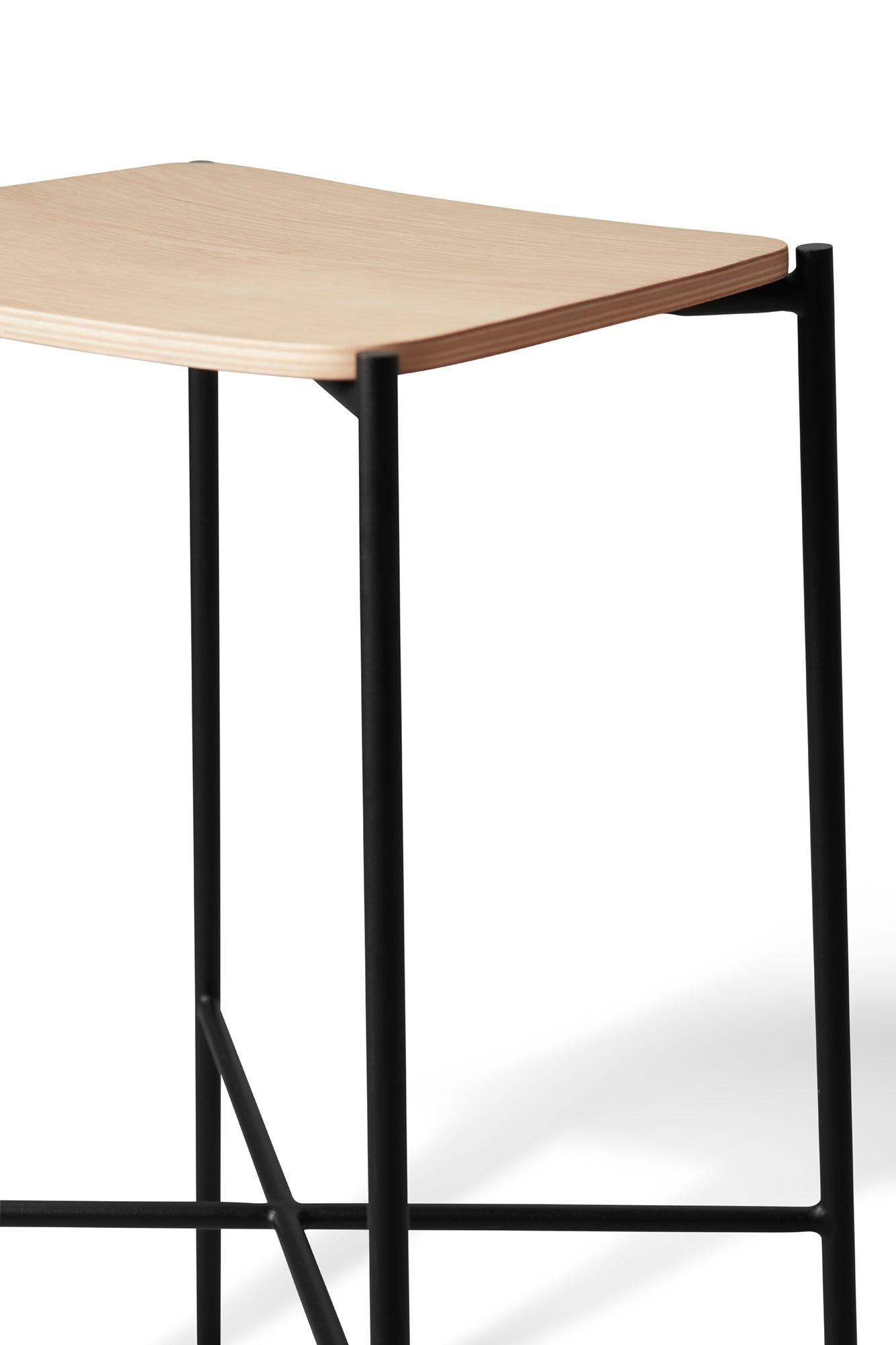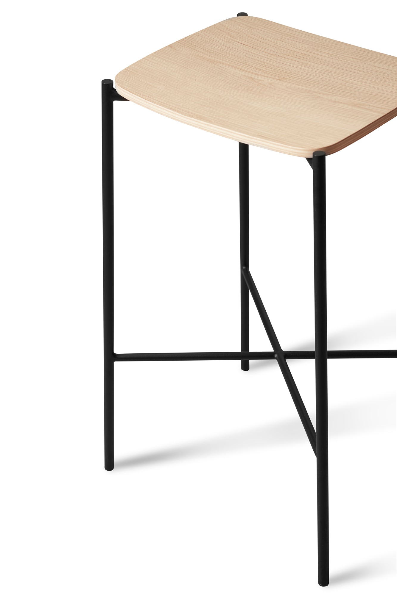 Black powder-coated steel tubes with a seat in premium veneer mounted on top.