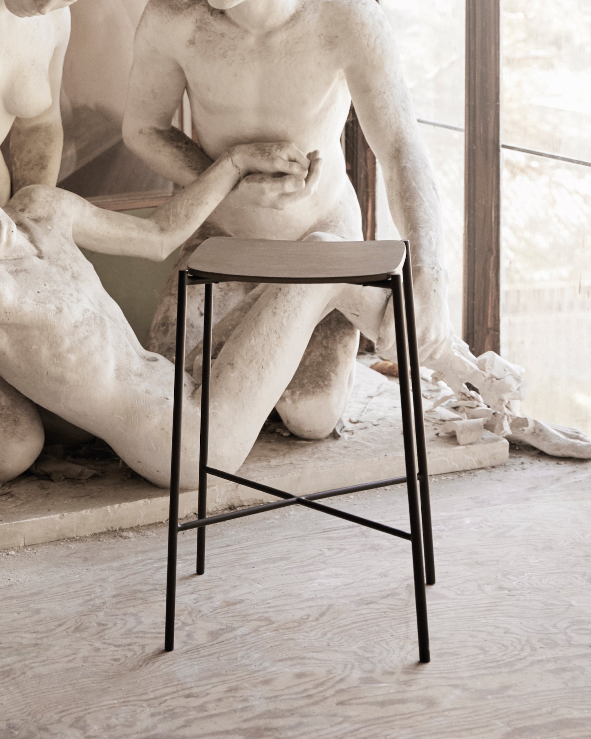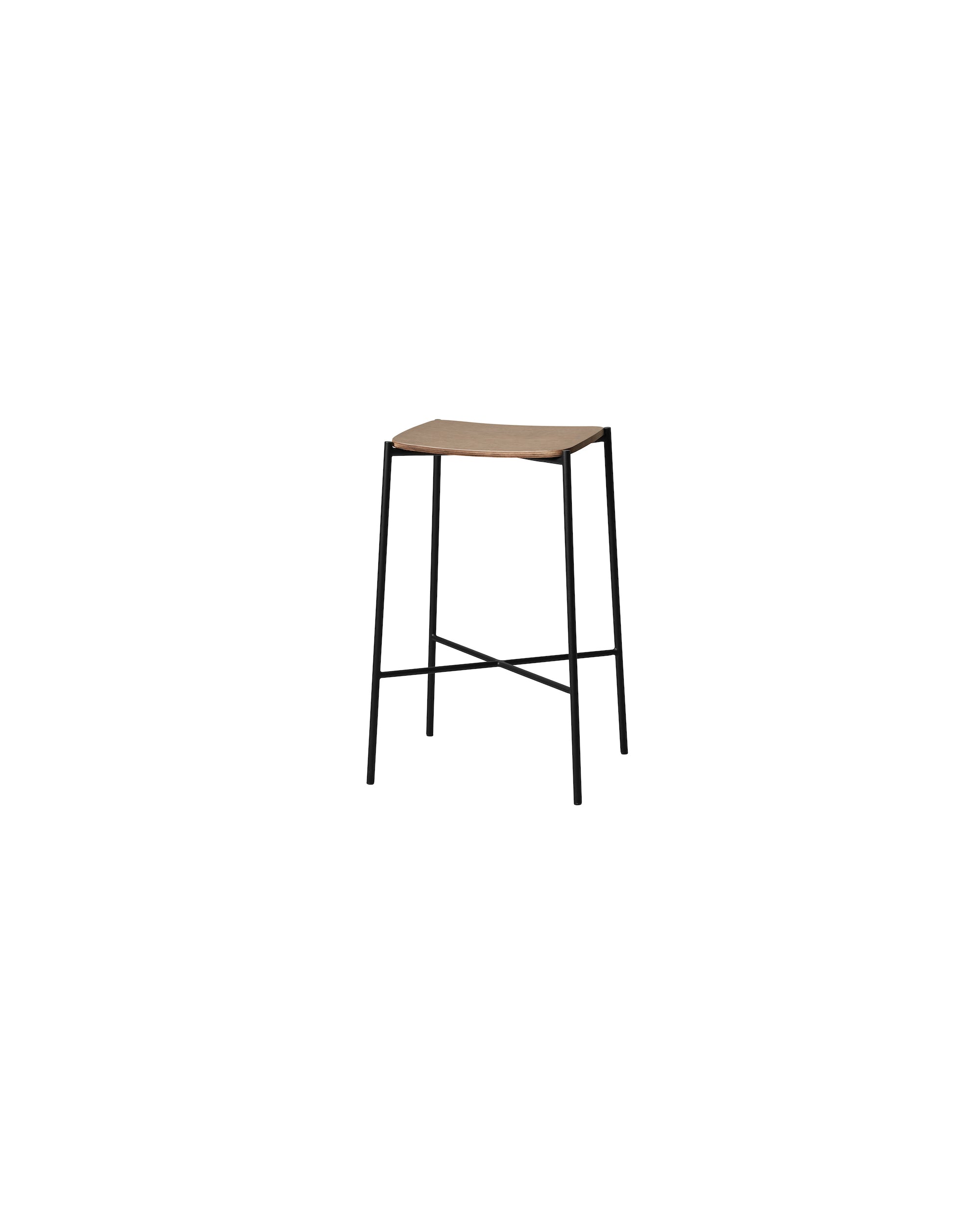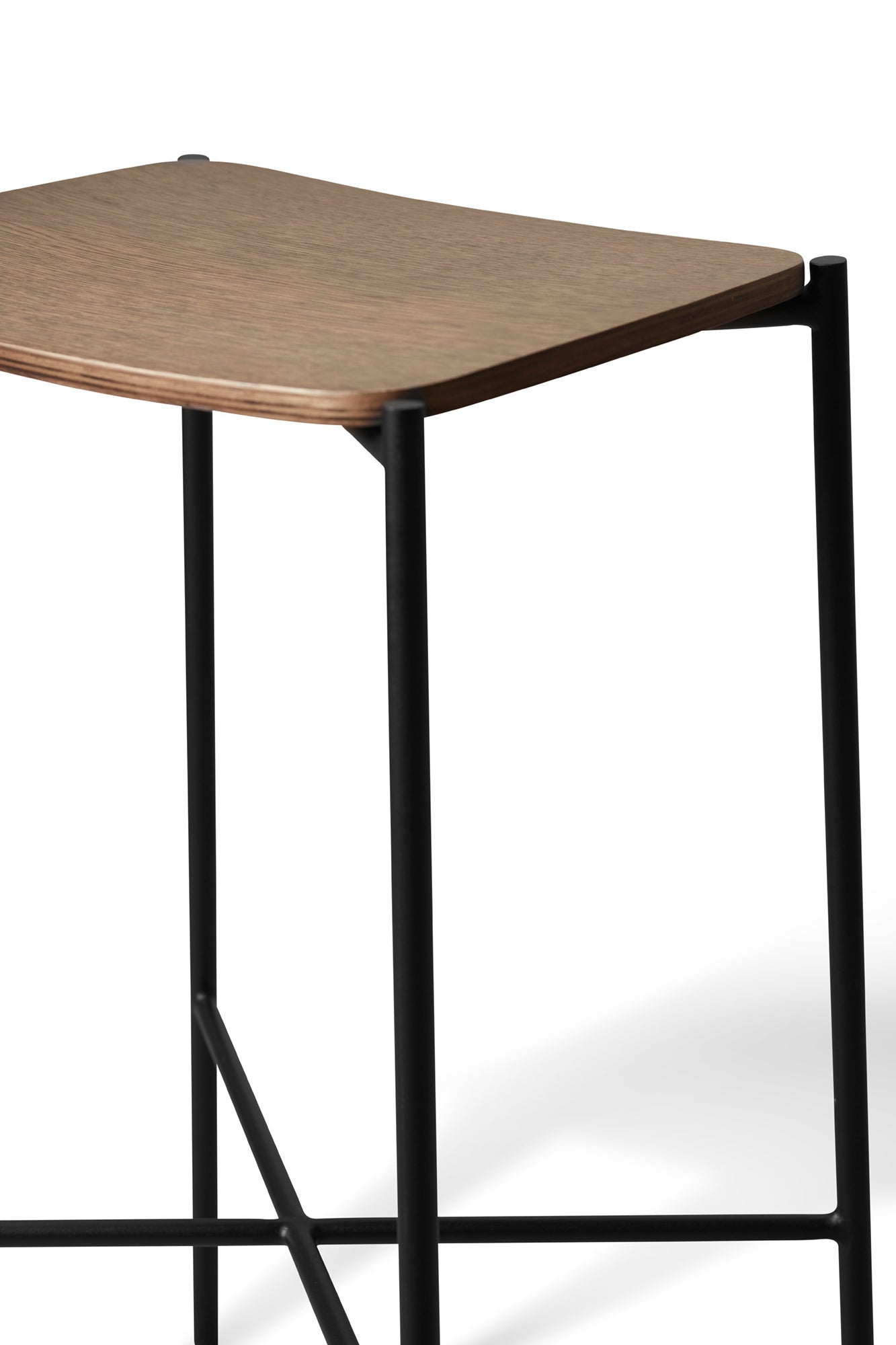Black powder-coated steel tubes with a seat in premium veneer mounted on top.