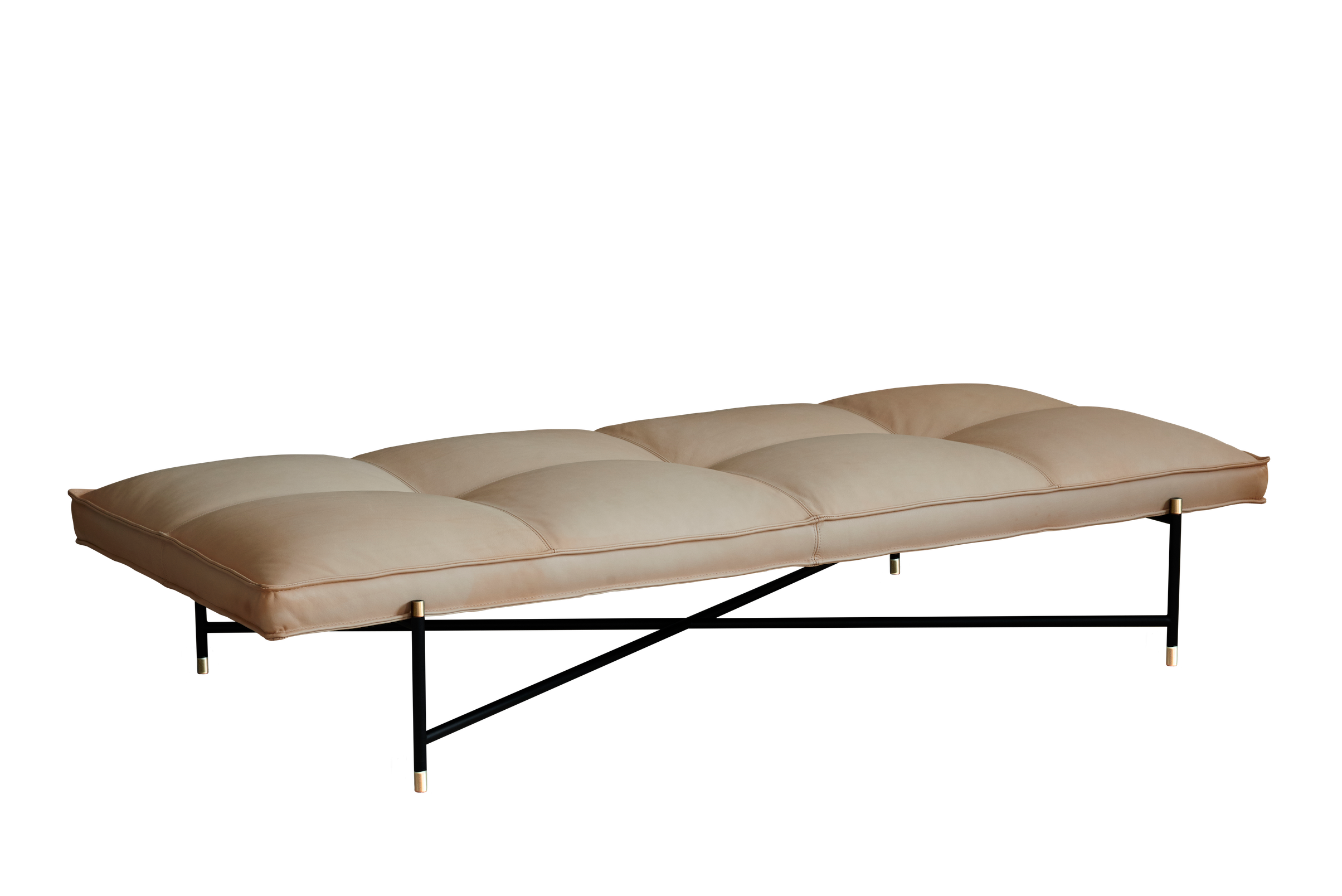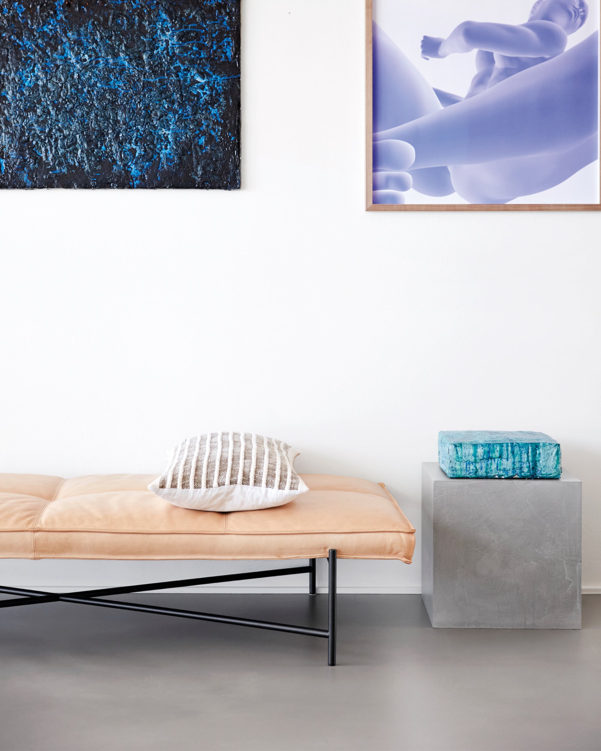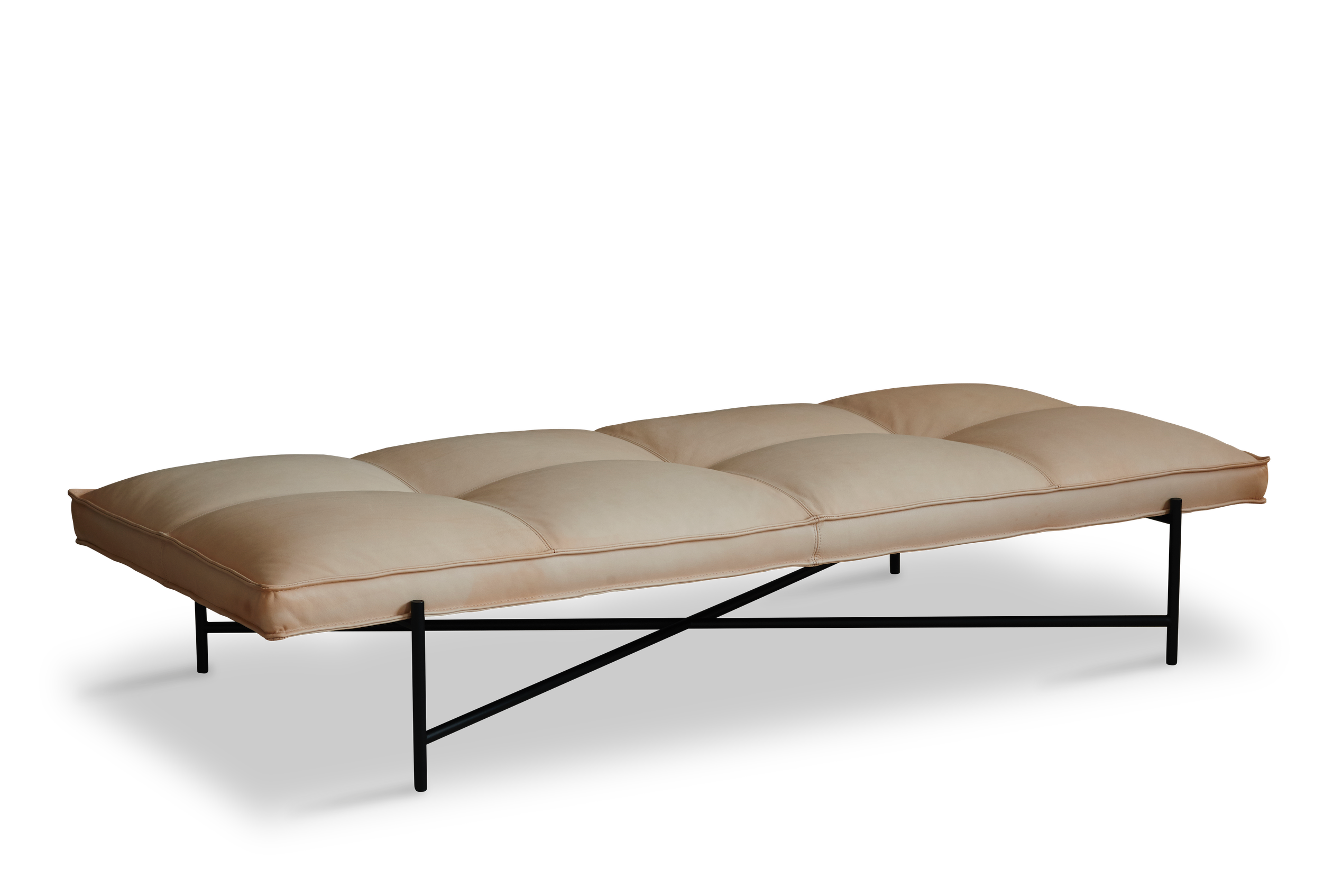 The Daybed stands as the crown jewel of HANDVÄRK's collection, embodying an unwavering commitment to materials, style, and craftsmanship. This sculptural design piece is adorned with your choice of leather upholstery, gracefully resting on a sleek metal frame that adds character, contrast, and durability. Whether featured in your hallway, walk-in closet, or as a stunning statement piece in your sunroom or living room, the Daybed is a versatile and elegant addition to elevate your space.