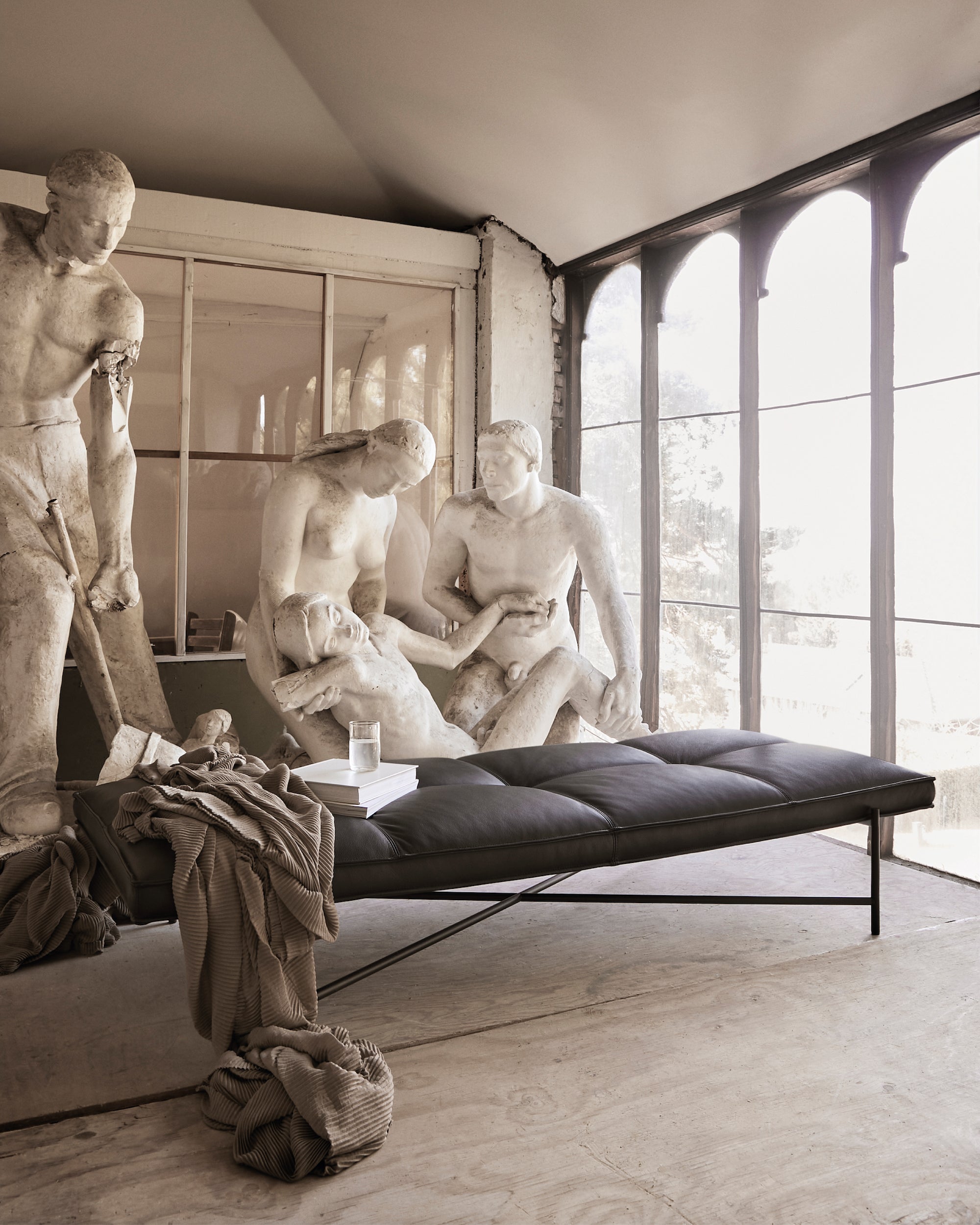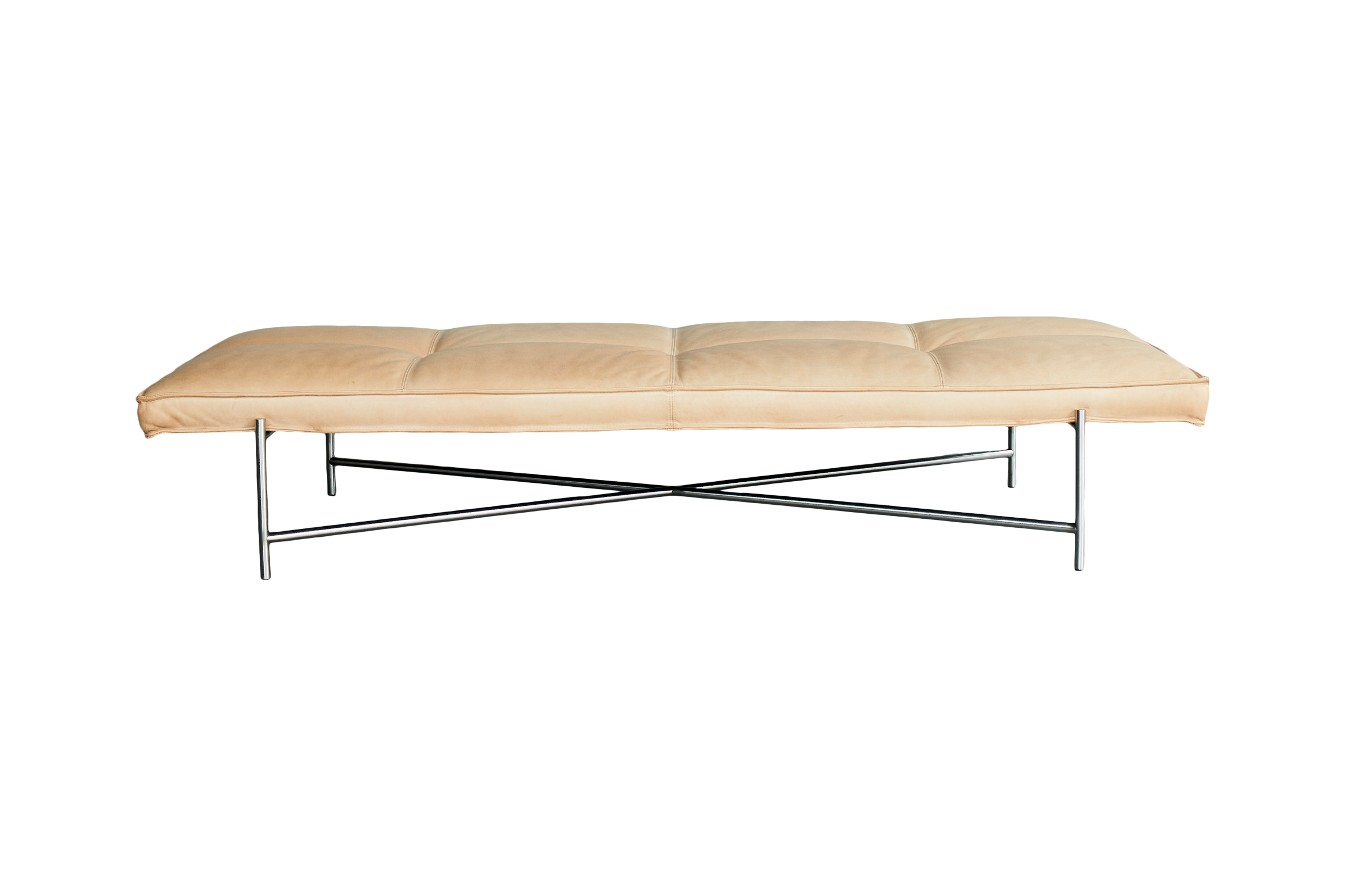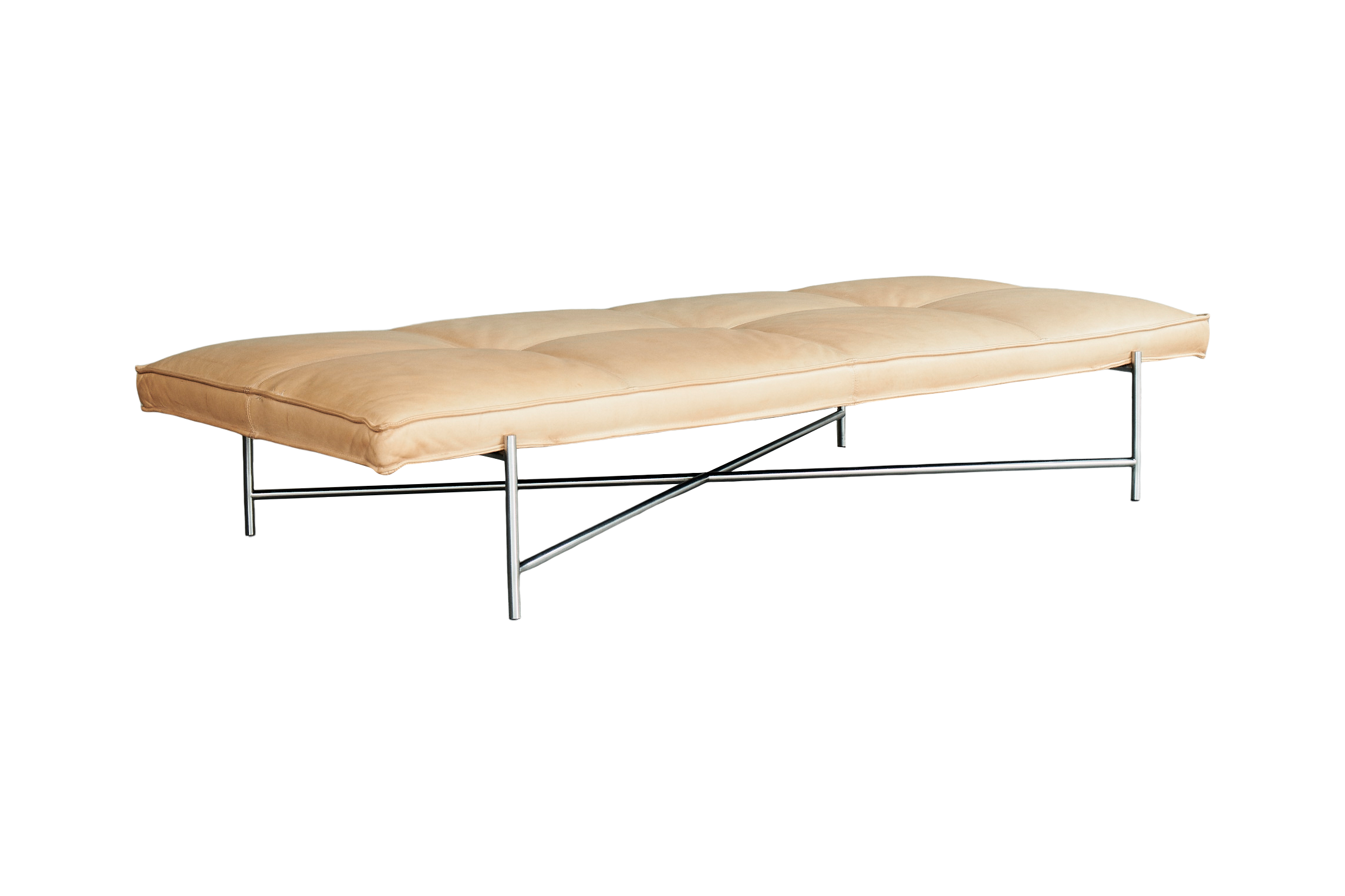 The Daybed stands as the crown jewel of HANDVÄRK's collection, embodying an unwavering commitment to materials, style, and craftsmanship. This sculptural design piece is adorned with your choice of leather upholstery, gracefully resting on a sleek metal frame that adds character, contrast, and durability. Whether featured in your hallway, walk-in closet, or as a stunning statement piece in your sunroom or living room, the Daybed is a versatile and elegant addition to elevate your space.