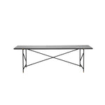 Choose between a black powder-coated or stainless steel frame paired with a distinctive Italian marble top. Embrace the uniqueness of each marble tile, as variations create a one-of-a-kind stone. For added warmth and an elegant touch, opt for solid brass details with the black frame.