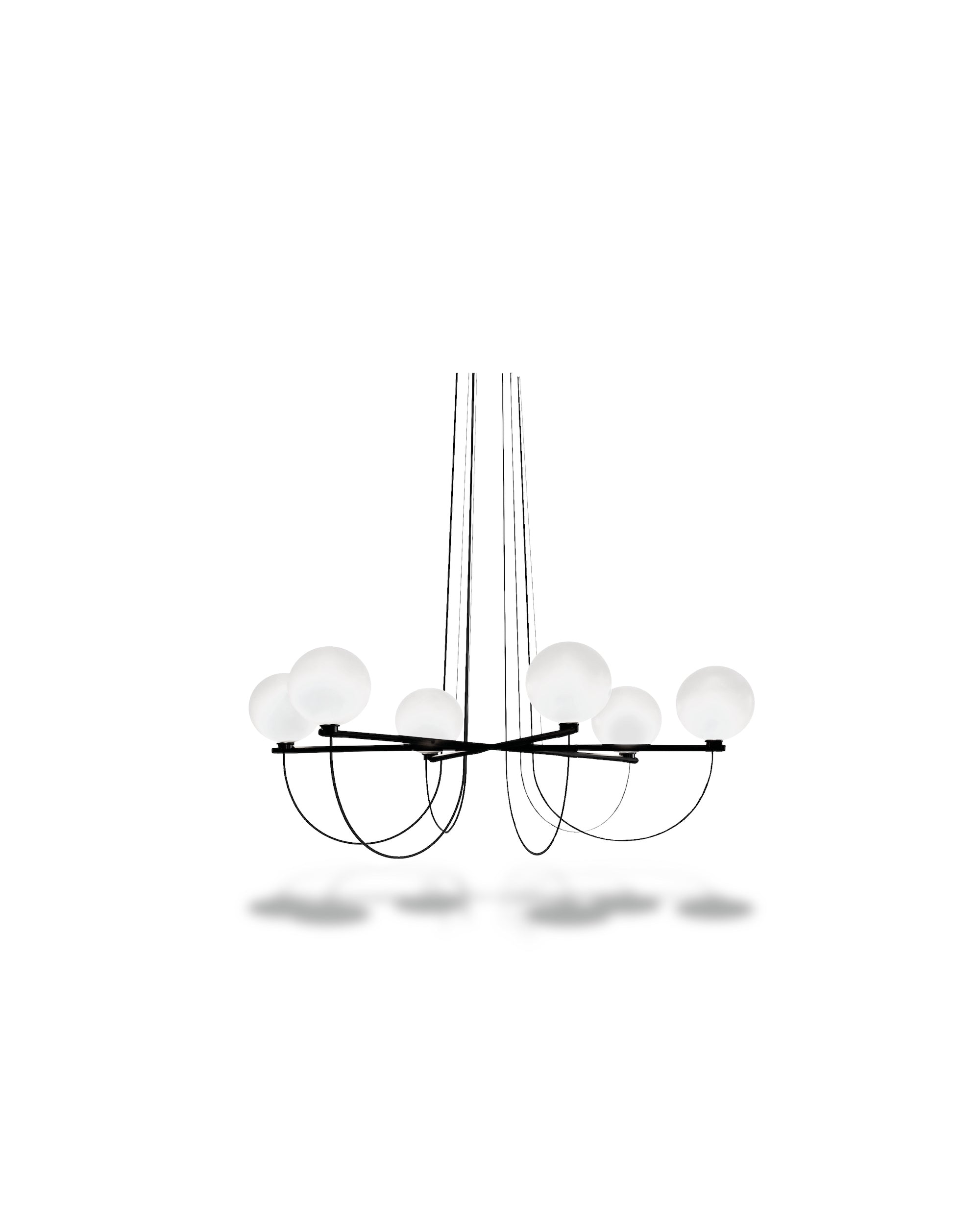 Inspired by the Bauhaus movement, the Globe Series embodies the philosophy of form following function, embracing every element in a lighting fixture. In contrast to designs that conceal electrical cords, the Globe Series integrates them as a distinctive part of the design, imparting an anticipated organic and feminine touch to the black-coated steel frame and the harmoniously balanced mouth-blown glass globes. This versatile lighting series includes both chandelier and floor lamp variations, making it suitable for a range of settings, including both residential and commercial spaces.