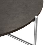 Choose between a black powder-coated or stainless steel frame paired with a distinctive marble top. Embrace the uniqueness of each marble tile, as natural variations create one-of-a-kind stones.